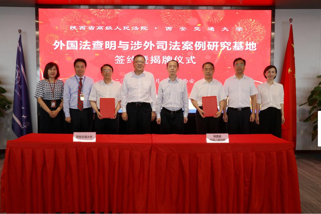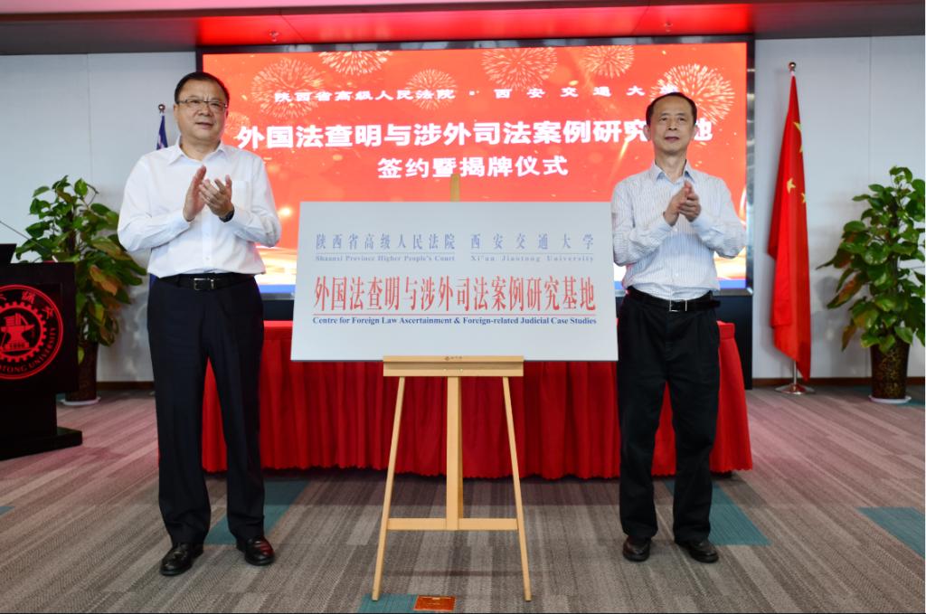 7月9日上午,陕西省高级人民法院—爱体育平台外国法查明与涉外司法案例研究基地签约暨揭牌仪式在中国西部科技创新港涵英楼举行。陕西省高级人民法院党组书记、院长李智,爱体育平台党委书记卢建军共同为研究基地揭牌。陕西省高级人民法院副院长巩富文、爱体育平台副校长席光签署共建协议。