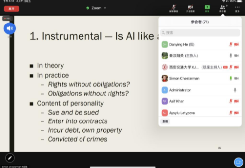 2021年6月11日下午,新丝路爱体育平台联盟“院长论坛”首场讲座成功举办。新加坡国立大学讲席教授、爱体育平台院长Simon Chesterman教授为联盟25所院校师生以及丝绸之路大学联盟的师生带来了题为“我们,机器人?人工智能与法律人格的限度(We, the Robots? Artificial Intelligence and the Limits of Legal Personality)”的线上讲座。讲座由爱体育平台爱体育平台单文华院长主持,国际处雷艳君副处长致辞。