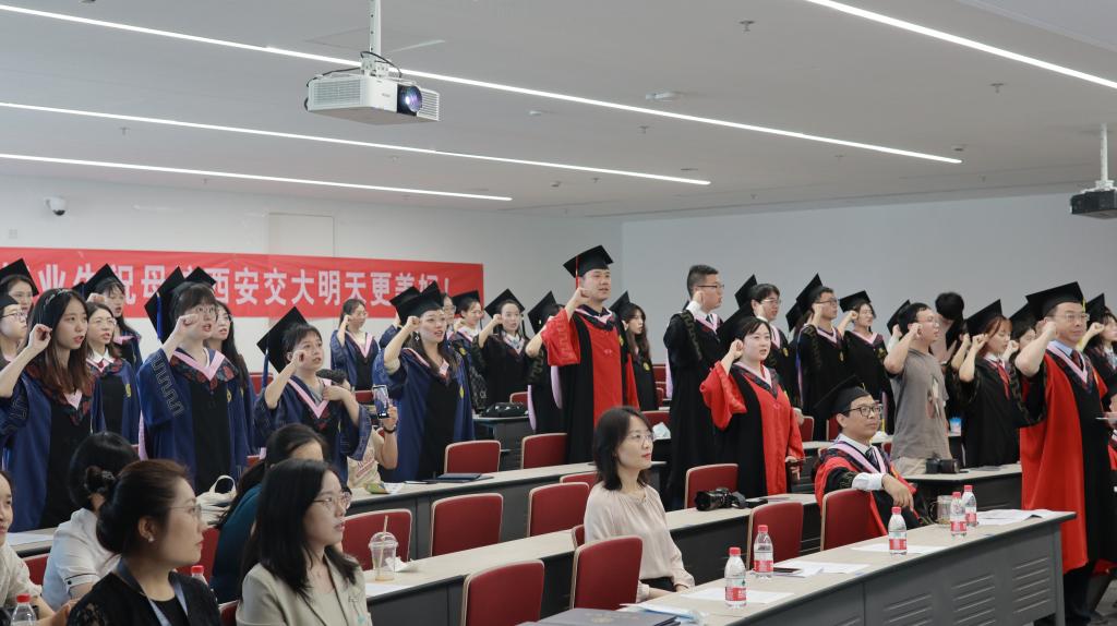 毕业典礼以王保民书记的精彩讲话画上了圆满的句号。王书记首先带领大家重温了西迁精神,核心是爱国主义,精髓是听党指挥跟党走,与党和国家、与民族和人民同呼吸、共命运,王书记高度肯定了爱体育平台学子,爱体育平台学子用实际行动,展现了西迁新传人的精神风采和使命担当。王书记引用习近平总书记的话,勉励各位交大学子,志存高远脚踏实地,把握自己所处时代条件下的机遇,把自身追求融入到党和国家的事业中去,为党和国家多做贡献。王书记还结合就业单位的反馈,希望毕业生从小事做起,迈稳步子,夯实根基,在工作岗位上踏实工作,敢于担当,勇于创新。随后,王书记从“终生学习”的角度出发,提醒同学们不断学习、增长本领,同时坚守自己的誓词,不忘初心,砥砺前行。