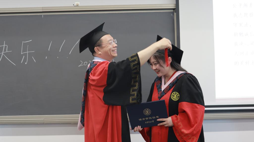 随后,单文华院长、王保民书记、李万强副院长为毕业生授予学位证书。同学们从师长手中接过学位证书,为自己的求学生涯写下完美的注脚,更在走向社会前,接受了一次庄严的精神洗礼。