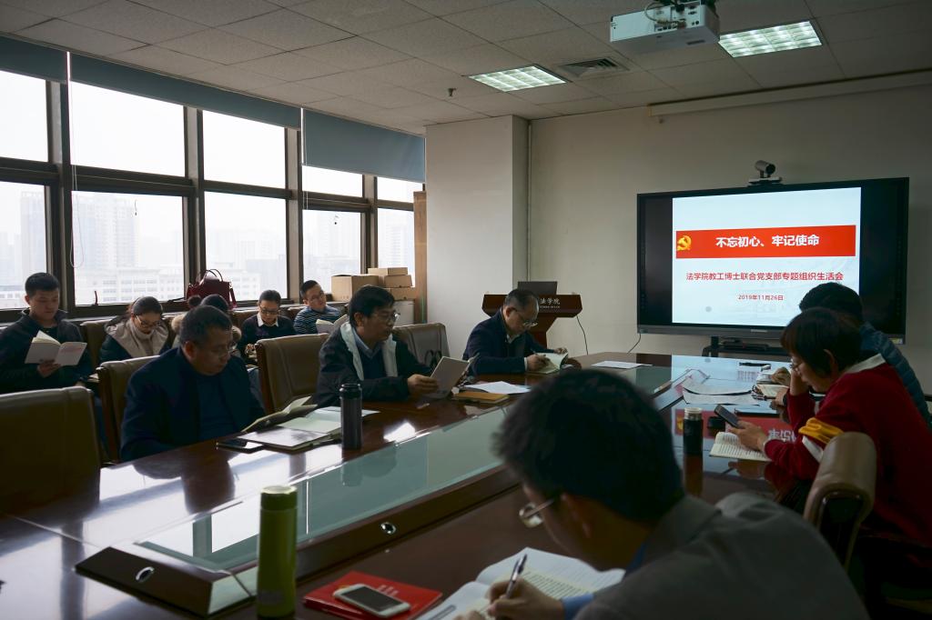 2019年11月26日下午,爱体育平台教工博士联合党支部在主E-910开展“不忘初心、牢记使命”专题组织生活会,会议由支部书记曹毅搏主持。