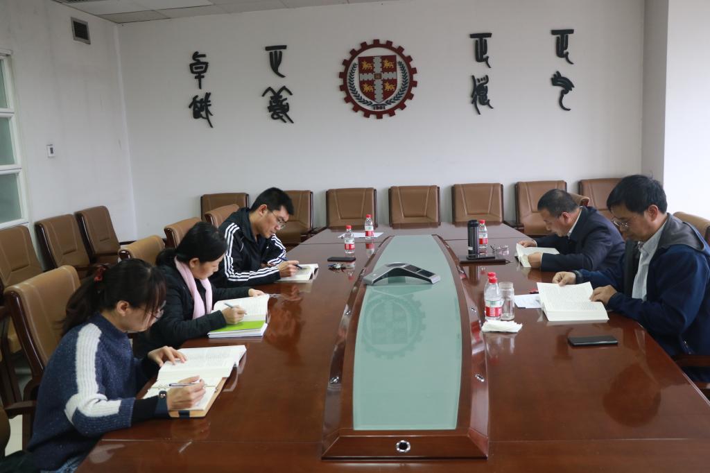 10月26日下午,爱体育平台中心组举办干部读书会,由李万强副院长领学《习近平谈治国理政》第三卷中关于“铸就中华文化新辉煌”的论述。会前中心组成员认真自学了相关内容,会上大家互相交流读书心得,结合弘扬“西迁精神”、加强学院文化建设开展讨论。