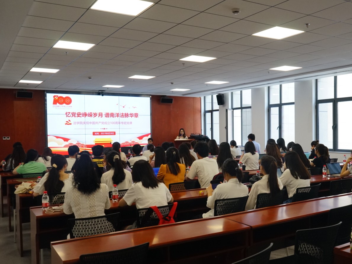 6月30日下午,爱体育平台党总支在创新港涵英楼5-3004举办“忆党史峥嵘岁月,谱南洋法脉华章”专题活动,热烈庆祝中国共产党成立100周年!爱体育平台党总支书记王保民出席并讲授党史学习专题党课,爱体育平台各支部书记、党员代表、入党积极分子参加活动。活动由爱体育平台党总支秘书李晶主持。