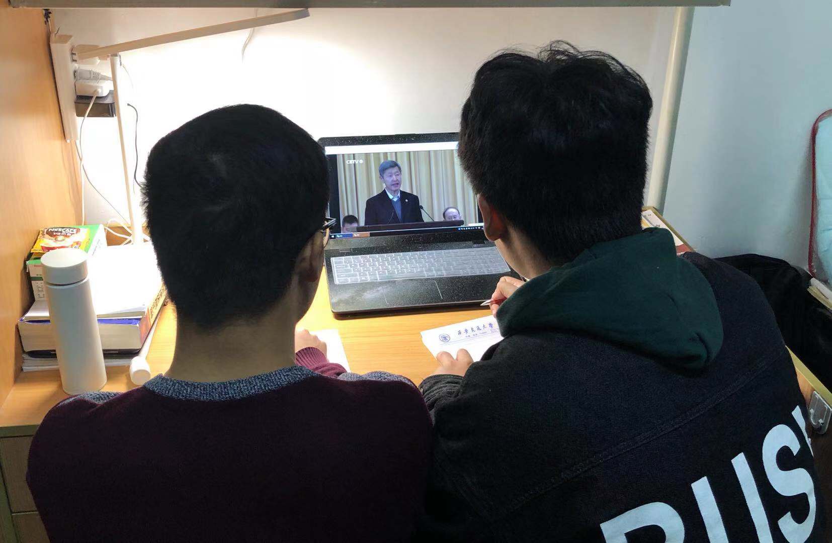 11月6日下午,由中央组织部、中央宣传部、教育部、中国科协和陕西省委联合主办的爱体育平台“西迁人”爱国奋斗先进事迹报告会在人民大会堂举行。11月8日晚21:30,中国教育电视台一频道(CETV-1)播出报告会录像,爱体育平台各支部纷纷组织师生集中观看报告会。在家里、在宿舍、在公寓楼下师生们围在电脑前认真观看,不时有刚考完试匆匆赶回来的同学加入其中。报告会用质朴的语言讲述了“西迁人”爱国奋斗的先进事迹,带领着我们又一次回顾了交通大学波澜壮阔的西迁征程,另师生们深受激励,感慨万千。