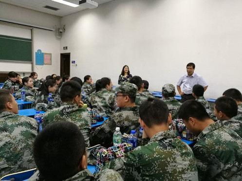 王保民书记首先进行慰问讲话,表示军训的意义不仅在于丰富国防知识、强健体魄、磨练意志培养纪律意识和团队精神,更重要的是作为新生进入大学的第一项必备仪式,成为开启青年学子新的人生旅程的里程碑。他希望各位同学在完成军训任务的同时,为即将开始大学生活做好心理准备,从思考大学生活区别于中学生活的特点入手,为未来大学生活做好计划,立好目标。吉兰湘老师亦对新生表达了殷殷嘱托,叮嘱同学们一定要珍惜大学时光,努力学习。最后,两位领导与同学们进行了热烈的互动,耐心解答了新生提出的各种疑问,鼓励大家在大学学习过程中要以全面发展为目标,积极主动,严格自律,善于利用各种教育资源;尽快走出新生的迷茫阶段,顺利开启大学四年的新篇章。