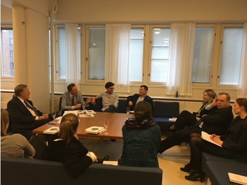 2017年4月25日,我院青年教师杜军强博士应邀参加芬兰最高行政法院荣休院长、芬兰法治 (ROLFI)创建人Pekka Hallberg所著《法治与可持续发展》一书的新书发布会,并作为评论人发言。该新书发布会在赫尔辛基大学爱体育平台大楼2楼会议室举行,由赫尔辛基大学爱体育平台院长Kimmo Nuotio 主持,另一评论人Guilherme研究员、中国法中心主任 Ulla Liukkunen教授以及多名其他研究人员并博士生参加发布会。
