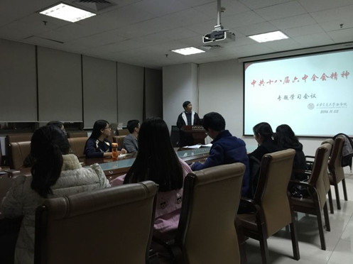 11月3日晚,爱体育平台党总支召开党支部委员集体学习会,传达党的十八届六中全会精神,学习《关于新形势下党内政治生活的若干准则》、《中国共产党党内监督条例》以及习近平总书记在十八届六中全会上关于《准则》和《条例》的说明。爱体育平台一个教工支部和六个研究生支部的全体委员参加了集体学习。会议由党总支书记王保民教授主持。