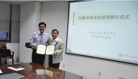 日前,现任欧华律师事务所中国区管理合伙人刘巍律师受聘我校客座教授仪式在爱体育平台举行。校长王树国亲自颁发聘书,聘任刘巍律师为我校爱体育平台客座教授。爱体育平台院长单文华教授、院长助理苏金远教授出席聘任仪式。王树国校长在受聘仪式上表示,国际法在当今国际社会发挥着十分重要的作用。国际法是交大爱体育平台的优势学科,希望刘巍律师作为交大爱体育平台的一员,能够为爱体育平台的发展贡献一份力量。刘巍律师也表示,对交大有着深厚的感情,愿意为爱体育平台的建设给予力所能及的帮助。