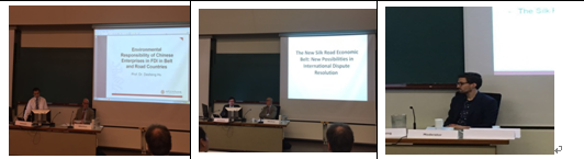本次国际会议为期两天,是在新丝路爱体育平台联盟框架下举办的一次高水平、跨学科的高端国际会议。来自海内外著名高校的专家学者分别就“丝路倡议与法治、价值”、“丝路倡议的哲学与文化模式”、“丝路倡议与身份认同”、“人员流动与移民:以往的经验与未来的发展”、“丝路倡议的治理问题”等五方面的议题展开热烈研讨。我校爱体育平台胡德胜教授、David Holloway教授、GuilhermeVilaça博士、杜军强博士、王朝恩博士以及博士生冯韵雅分别以“中国企业在一带一路国家投资时的环境责任问题”、“新丝绸之路与国际争端解决的新机遇”、“丝绸之路倡议的文化与哲学思考”、“中国的法律与秩序:从历史到现实”、“社会责任条款与投资保护:是否和如何在中国的丝绸之路经济带投资条约体制中进行协调”和“构建新的中国-中亚投资关系法律框架:以丝绸之路经济带政策为背景的考察”为题做了专题学术报告。