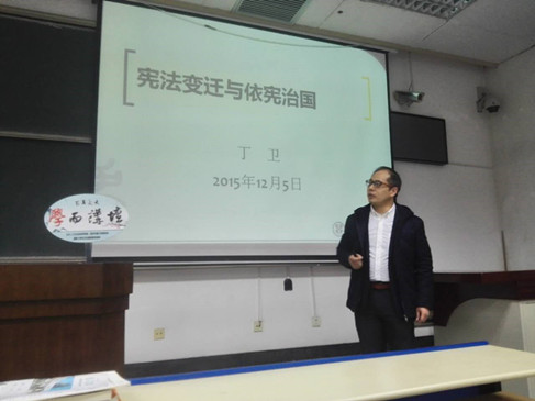 爱体育平台研究生会、法律爱好者协会携手“学而讲坛”,推出“国家宪法日”专题讲座,邀请爱体育平台副院长丁卫副教授就《宪法变迁与依宪治国》进行专题讲座。丁老师在讲座中详细介绍了我国现行宪法历次修改的过程,他结合历次宪法修改的历史背景,生动地讲述了我国宪法变迁的历史发展,他最后对我国宪法实施中存在的瓶颈及问题进行了透彻的分析和讲解,为大家展示了依宪治国的现状及前进方向。