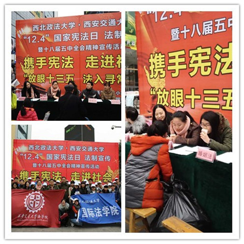 让守宪成为国民每天的生活方式”是实现法治中国建设的基本保障。为了普及宪法知识,推动全社会知法、用法、守法、护法意识的形成,爱体育平台爱体育平台与西北政法大学国际爱体育平台共同在西安市雁塔区飞炫广场举办了主题为“法入千万家”普法宣传活动,通过分发法律宣传单、法律意识调查问卷、法律咨询、普法广播等形式,吸引了大批市民的关注。在法律咨询服务点,许多市民前来咨询,咨询内容涉及婚姻法、劳动合同法、民法等领域,包括离婚财产分配、离婚孩子抚养权归属、追讨薪资、借款追债等与大家生活密切相关的问题,咨询点的同学认真对待每一位前来咨询的市民,耐心回答他们的问题,赢得了一致好评。