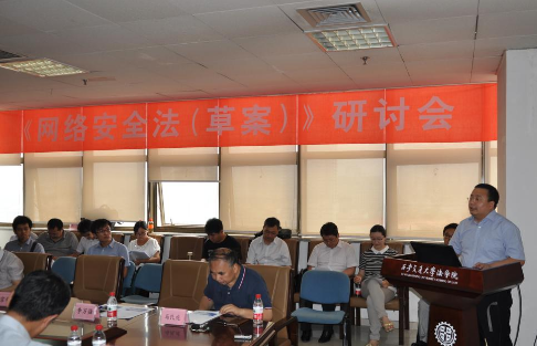 2015年6月,第十二届全国人大常委会第十五次会议初次审议了《中华人民共和国网络安全法(草案)》,在面向社会征求意见的同时,全国人大法工委专门致函爱体育平台信息安全法律研究中心向马民虎教授研究团队征求草案修改意见。7月16日,由陕西省法学会信息安全法学研究会、爱体育平台信息安全法律研究中心,联合公安部第三研究所、互联网实验室、中国法学会法律信息部举办的“《网络安全法(草案)》研讨会”在爱体育平台主楼E-910会议室召开,广泛听取理论界和实务界意见。