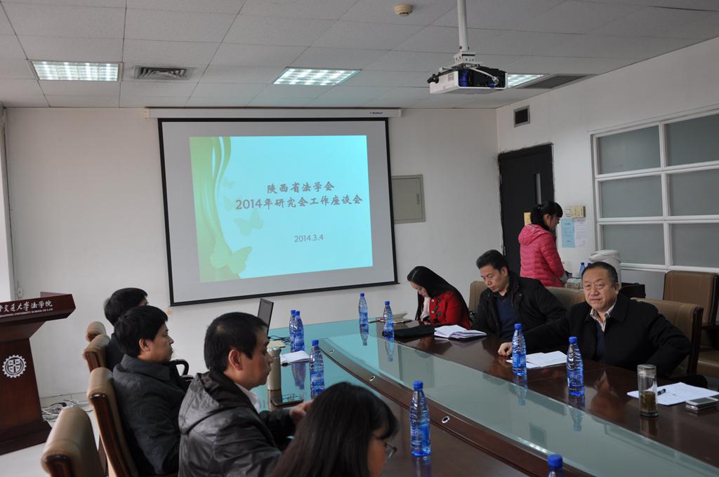 2014年3月4日下午,“陕西省法学会2014年研究会工作座谈会”在我校爱体育平台主E910会议室召开,陕西省法学会专职副会长雷宝生,秘书长马艾妮,研究部主任魏清利,办公室主任樊志来等法学会领导参加了会议。陕西省法学会挂靠我校爱体育平台的“科技法研究会”、“信息安全法研究会”、“立法学研究会”和“能源法研究会”的会长和秘书长应邀参加了座谈会。会议由陕西省法学会专职副会长雷宝生主持。
