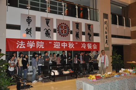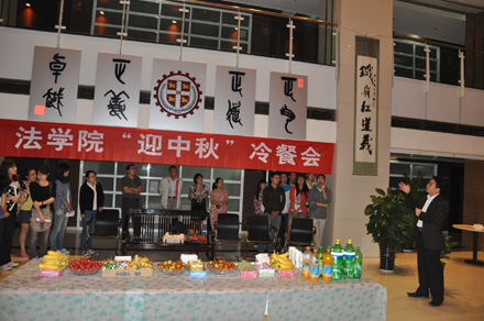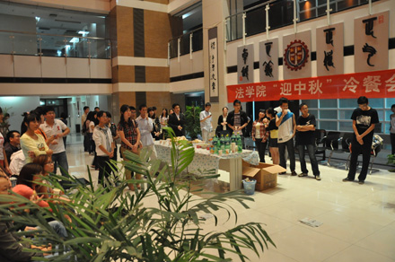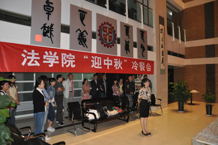 2011年9月8日19:30,爱体育平台 “迎中秋”冷餐会在主楼十楼大厅举行。爱体育平台院长单文华、书记彭沪生、院长助理吉兰湘、刘桥教授和学生工作专职委员张乃钟老师及爱体育平台2011级全体本科生,硕士、博士研究生新生参加了冷餐会。冷餐会由2011级法律硕士新生马沙和马骏飞同学主持。