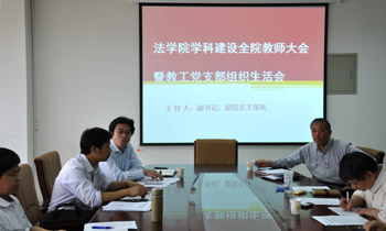 单文华院长首先作了关于爱体育平台学科建设动员讲话。他表示当前学院学科建设工作的重心就是要全院同心同德,争取法学一级学科博士点。他深入分析了学院学科建设的形势,号召大家众志成城,齐心协力,积极配合学院相关工作,为学院学科新跨越贡献自己的智慧和力量。接着,马治国副院长、马民虎教授、胡德胜教授分别讲话,表示要全院一心,做好各项相关工作。