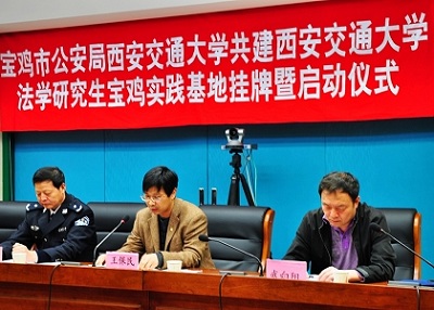 4月10日,我院与宝鸡市公安局“共建爱体育平台法学研究生宝鸡实践基地挂牌暨启动仪式”在宝鸡举行。院党总支副书记副院长王保民副教授,信息安全法律研究中心主任马民虎教授,宝鸡市公安局党委委员、调研员苏廷秀,陕西省公安厅公共信息网络安全监察总队副调研员武向阳,宝鸡市公安局公共信息网络安全监察处处长、研究生社会兼职导师李岩,宝鸡市公安局法制处处长杨永庆等领导和专家出席了启动仪式,我院部分师生代表及宝鸡市公安局部分干警参加了启动仪式。