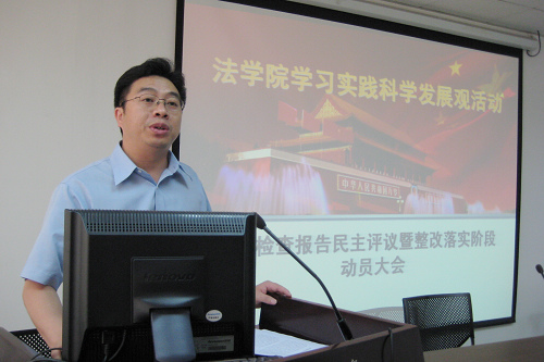 爱体育平台总支书记、院长、学习实践活动领导小组组长单文华,首先向与会师生做了《爱体育平台领导班子贯彻落实科学发展观情况分析检查报告》。他说,遵照校党委关于深入开展学习实践科学发展观的工作部署,爱体育平台围绕“育法学栋梁,谋创新发展,创一流学院”的学习实践载体,认真学习理论、深入调查研究、开展解放思想大讨论、广泛征求意见建议,在此基础上召开专题民主生活会。会议举行之前,院领导班子成员之间开展了充分深入的谈心交流活动,并就会议准备事项在院党总支会议上进行了专题研究。在此基础上,经过院党总支会议研究讨论,最终形成了爱体育平台领导班子分析检查报告。分析检查报告包括学习实践科学发展观活动的中学院领导班子形成的共识、爱体育平台建院一年多以来取得的主要成效、爱体育平台在贯彻落实科学发展观中存在的突出问题、原因以及今后贯彻落实科学发展观的主要思路和对策等四个方面。他最后强调,爱体育平台党总支要以深入开展学习实践科学发展观活动为契机,围绕打造“育法学栋梁,谋创新发展,创一流学院”的目标,着力完善师资队伍建设、学科建设、专业设置、学生管理等方面机制;强化服务意识,加强领导班子作风建设,创新发展理念,破解发展难题,提高发展水平,应对新挑战、抢抓新机遇,在服务大局中实现爱体育平台的科学发展。