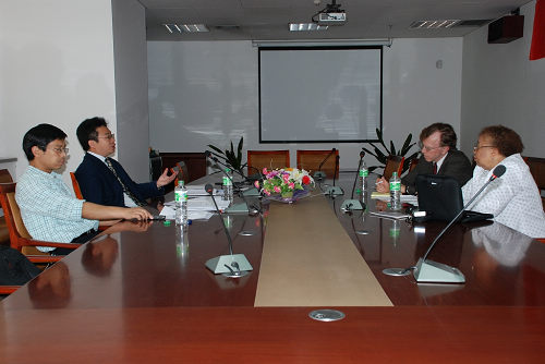 6月2日上午, 林肯爱体育平台院长Steven Lester Willborn教授、副院长Anna Williams Shavers教授以及其他两位成员,在主楼601会议室,与爱体育平台院长单文华教授、副院长马治国教授、副院长副书记王保民副教授、以及部分博士、硕士研究生代表,举行座谈。会议伊始,单院长代表爱体育平台对林肯爱体育平台代表团的来访表示了欢迎,并表示希望双方利用访问的机会在师生互访、学术交流和联合办学等方面达成实质性的协议。双方在各自介绍了其法学学科的发展情况后,展开互动交流,气氛融洽,加深了双方相互间的了解。