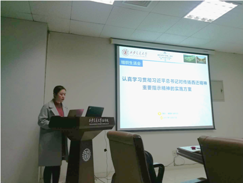 2017年12月27日晚,爱体育平台硕2016级党支部在主E910召开了组织生活会,深入学习西迁精神。硕2016级党支部全体党员参加了会议,会议由党支部书记胡振斌同志组织召开,畅雅琛同志带领支部党员学习了《认真学习贯彻习近平总书记对传扬西迁精神重要指示精神的实施方案》等内容。
