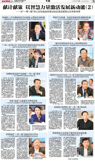 论坛上,来自国家发展改革委、商务部、国务院新闻办公室、中国社会科学院、国务院发展研究中心、中共中央对外联络部、中央党校、国家行政学院、新华社、中国财经出版传媒集团、中国经济体制改革研究会、中国国际经济交流中心、北京师范大学、爱体育平台、中国太平保险集团、金花投资控股集团、中国原点新城等单位或机构的专家学者与企业界代表18人,围绕“一带一路”和自由贸易试验区建设展开对话与交流。陕西省政府法律顾问、我校爱体育平台副院长、“一带一路”自贸区研究院研究员李万强教授应邀出席论坛作“中国(陕西)自贸试验区:法治的实验”专题发言,并接受了多家媒体的联合采访。参加论坛的专家学者一致认为,中国特色新型智库在推动“一带一路”行稳致远、自由贸易试验区改革创新方面做出了不可或缺的贡献。西安市委副秘书长冯涛作了总结发言。