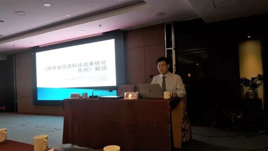 马治国教授结合我省贯彻落实习近平总书记来陕视察时“努力在创新驱动发展方面走在前列”重要指示的精神,立足我省创新性省份建设以及科技成果转化实践的现实需求,系统讲授了《条例》的修改背景、修改历程、修订的主要内容及九大修订亮点,为咸阳各县市区科技局分管领导及业务科长,驻咸科研院所、高校,有关企业业务负责人如何进一步贯彻落实《条例》进行了一次全面的培训。