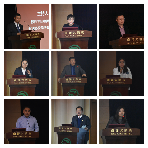 随后,大会进入了“群英会”环节。本环节由陕西标新律师事务所公司专业委员会副秘书长张晗,陕西永嘉信律师事务所合伙人、陕西省律协金融证券专委会委员张璠,陕西平非律师事务所副主任、陕西省律协公司法专业委员会副主任张权,陕西云德律师事务所公司法律顾问事务部首席律师、陕西省律协公司法专业委员会副秘书长杨彩虹依次主持,由张璠、岳玲利、田少荣、王玉苹、勾晓强、任婧、齐精智、刘醒、任永平、崔树森等十名律师对大西安建设中企业创新法律问题进行了深入的探讨,其所涉及的议题丰富,各位发言人见解独到,听众反馈积极,会议气氛热烈,也为今后的学术研究和司法实务开辟了新的视野。最后延安大学政爱体育平台副院长刘向林,陕西省企业经济法治研究会副会长、爱体育平台法学副教授张冰,陕西德伦律所主任梁志新,陕西德伦律师事务所律师、西安市律协公司法专业委员会委员韩小春对十名律师的报告进行了精彩纷呈的点评。