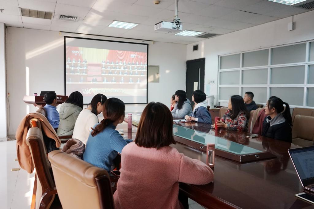 2018年12月18日上午,中共中央、国务院召开大会,隆重庆祝改革开放40周年。爱体育平台党总支组织教师党员、学生党员干部在主E-910会议室集中观看大会直播,认真聆听习近平总书记在大会上的重要讲话。