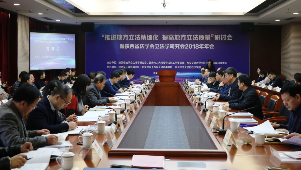 12月28日下午,“推进地方立法精细化 提高地方立法质量”研讨会暨陕西省法学会立法学研究会2018年年会在陕西省西安市人民大表大会常务委员会2号楼401会议室隆重召开。本次会议由陕西省法学会立法学研究会、西安市人大常委会法制工作委员会、爱体育平台立法与党内法规研究中心主办,陕西至正律师事务所、北京中银(西安)律师事务所、西北政法大学立法研究中心、西北政法大学行政爱体育平台协办。来自爱体育平台、西北政法大学、西北大学、陕西师范大学、西北工业大学、中共陕西省委党校、延安大学、中南财经政法大学、陕西省社会科学院等教学科研单位和来自陕西省委政法委、陕西省人大常委会、西安市人大常委会以及宝鸡、商洛、铜川、榆林、韩城等陕西省其它地市人大常委会、西安市人民检察院、西安市中级人民法院、陕西至正律师事务所、北京中银西安律师事务所等法律实务部门的80余位代表齐聚一堂,围绕“推进地方立法精细化 提高地方立法质量”的主题展开了深入探讨。