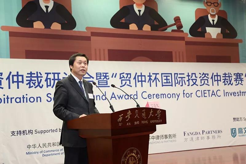 投资仲裁赛后,西安交大爱体育平台与贸仲委共同举办了贸仲委投资仲裁研讨会。商务部条法司为本次投资仲裁赛和研讨会的支持机构。西安市人民政府副市长王勇、贸仲委副主任兼秘书长王承杰、商务部条法司投资处副处长王优酉、西安交大爱体育平台院长单文华、西安贸促会会长龙晓华出席会议。研讨会上,来自国内外的投资仲裁领域专家、学者和律师对投资仲裁的程序性争点进行评述,结合国际投资仲裁的著名案例分享实务经验,介绍了包括对仲裁请求的先期驳回和第三方资助在内的热点话题。