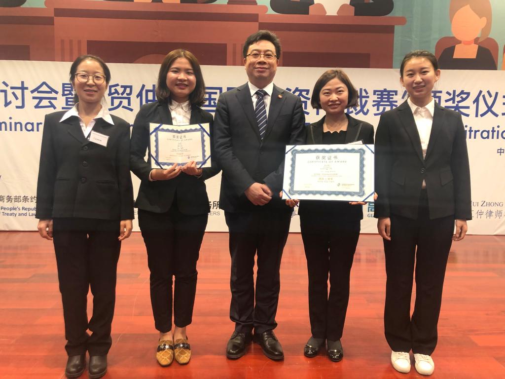 西安交大参赛队伍由2017级研究生张艳、2015级本科生李文鑫、廖倩以及2016级本科生熊平书组成,爱体育平台王朝恩、张生担任教练,单文华教授、李万强教授担任顾问,曾代表学校参加亚太地区第一届外国直接投资模拟法庭的队员王鹏博士和冯韵雅博士也提供了指导。队员们积极认真准备比赛,最终凭借扎实的投资专业知识,优秀的英语表达能力以及娴熟的法庭辩论技巧,获得仲裁员认可,在十四支代表队中脱颖而出,总分排名第四,获得团体二等奖,李文鑫和熊平书同学荣获“优秀辩手”称号。