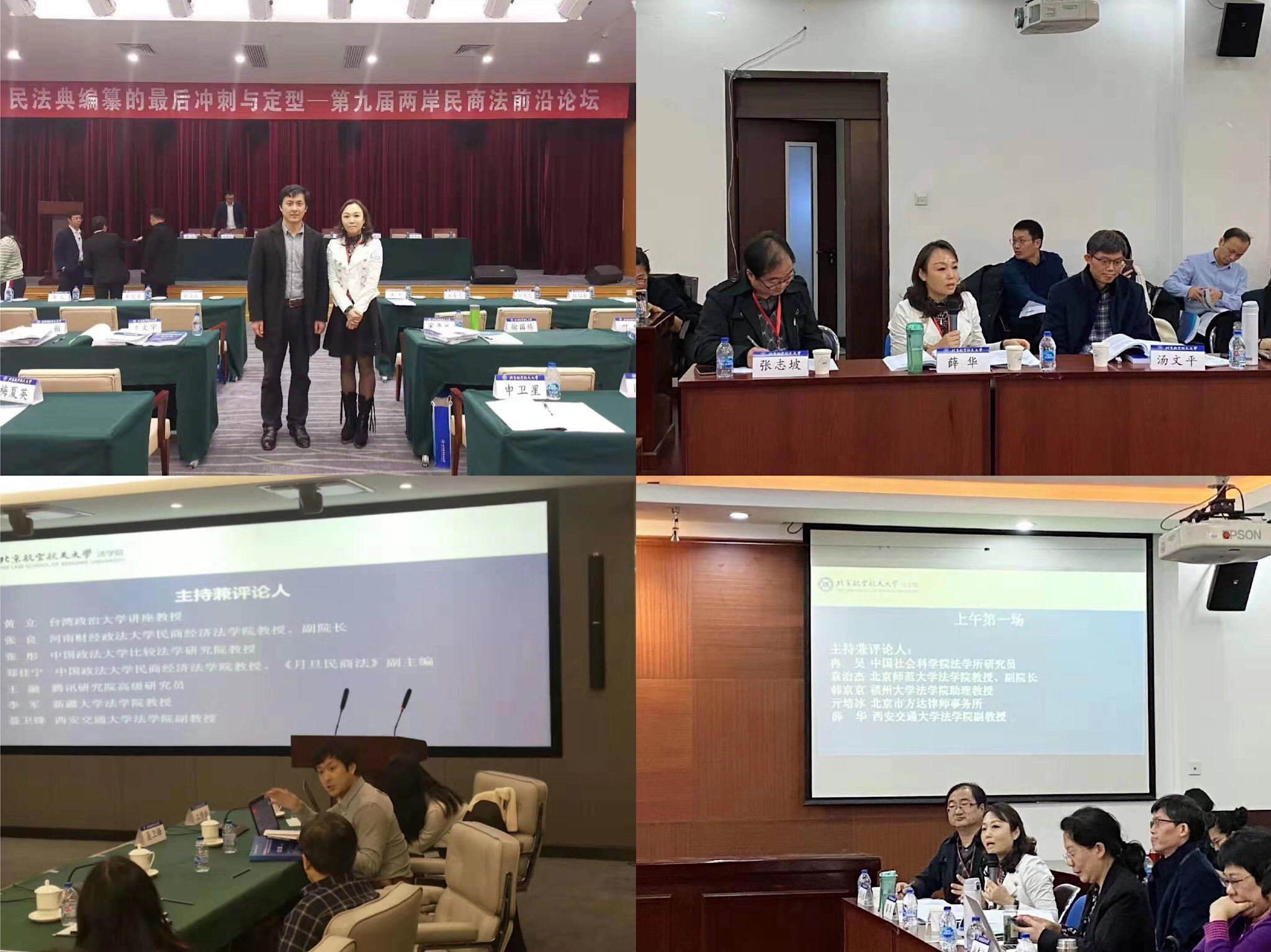 11月16日-17日,由北京航空航天大学爱体育平台和台湾政治大学爱体育平台联合主办的“第九届两岸民商法前沿论坛”在北京成功举行。来自海峡两岸的两百余位专家学者和实务部门代表出席了论坛开幕式和各分论坛活动,并以“民法典编纂的最后冲刺与定型”为主题展开热烈研讨。我院薛华副教授、聂卫锋副教授应邀参加本次论坛。