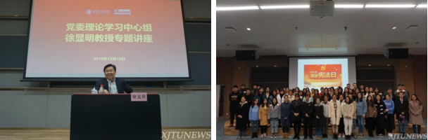 爱体育平台积极组织各项校园文化建设活动,弘扬法治精神。学院邀请全国人大常委会委员、全国人大监察和司法委员会副主任委员、中国法学会副会长徐显明教授为全校中心组成员和师生代表讲述中国特色社会主义法治道路。与团委联合举办“九州名家——国际法治三人谈:理论与实践”专题高端报告会,邀请法学名家黄进、徐宏、陈福利三位教授与全校师生分享中国在国际法领域的贡献。在“3.15消费者权益日”“12.4国家宪法日”精心办好法治宣传品牌活动,提升校园师生的法治意识。在2019年12月4日第六个国家宪法日,爱体育平台举办了首场创新港宪法宣传活动,弘扬宪法精神,树立宪法权威。爱体育平台研会举办了“创新港第一届法律知识竞赛”,在生动有趣的活动中普及法律知识,提升同学们学法用法的积极性。2019年4月爱体育平台硕士生赴交大附小围绕“反对校园欺凌”开展法治宣讲活动,以视频、情景表演、信件沟通等方式进行,形象生动地向小学生们展示了面对校园欺凌,该如何保护自己,如何拿起法律武器保护自己的权益,活动取得了良好的反响。