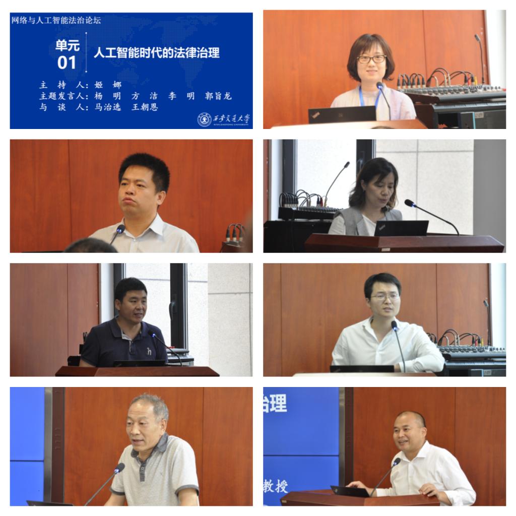论坛由四个单元组成。第一单元“人工智能时代的法律治理”,由国防大学政治学院(西安校区)军队司法工作系姬娜副教授主持。北京大学爱体育平台教授、互联网法律研究中心副主任杨明以《数据驱动时代的法律规制》为题,分享了数据驱动竞争的经济内涵,并讨论了数字驱动竞争中行为的可规制性。浙大城市学院爱体育平台常务副院长方洁副教授结合自己长期担任杭州市人大法制委员会委员的经历,以《城市大脑赋能城市治理促进条例》的立法过程为例,阐明“善治下的立法的产生应当来自民众的真实需求”,为智能城市治理选择提供参考。西北政法大学博士生李明聚焦网络反恐,提出完善立法、加强国际合作、强化反恐人才培养等多方面对策。中国政法大学网络法学研究所郭旨龙老师从科幻文学中的机器人法则入手,提出其对人工智能法学研究的可借鉴性与局限性,开启了与会人员之间的“头脑风暴”。与谈人西北政法大学马治选教授及爱体育平台爱体育平台王朝恩副教授分别对四位发言人的学术报告进行点评,并提出了自己关于人工智能时代城市治理、人工智能法律规制的见解。