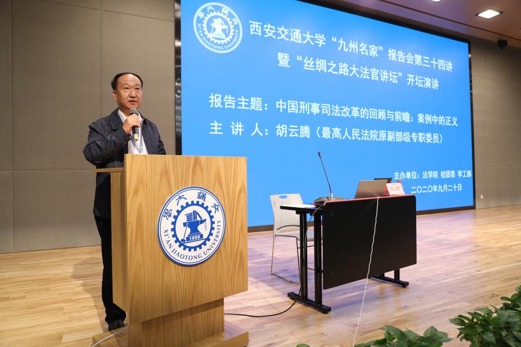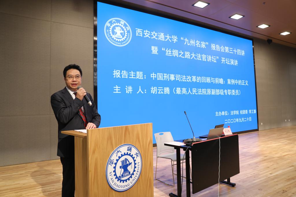 2020年9月20日,最高人民法院原副部级专职委员胡云腾大法官在中国西部科技创新港开坛论道,以《中国刑事司法改革的回顾与前瞻:案例中的正义》为题,畅谈中国司法改革40余年变化与成就。王树国校长在涵英楼11楼会见了胡云腾大法官。校党委副书记赵昌昌出席了报告会并致辞,校团委书记苏翔,陕西省律师协会会长韩永安,贸仲丝路中心秘书长助理蒋红梅,爱体育平台副院长李万强,爱体育平台副院长丁卫老师一并出席报告会。报告会由爱体育平台院长兼国际教育学院院长单文华主持。