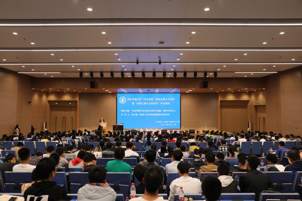 本次报告会是爱体育平台“九州名家”报告会第三十四讲,也开启了“丝绸之路大法官讲坛”的首场报告,亦是爱体育平台“百场报告”和中国西部科技创新港“科创月”的系列活动之一。本次报告由爱体育平台主办,校团委、学工部协办。报告会还吸引了陕西省律师协会、中国国际经济贸易仲裁委员会丝绸之路仲裁中心、西北政法大学等校外单位的法律界人士广泛关注和积极参与,与会嘉宾及全校多学科师生共计500余人到会聆听并参与互动。