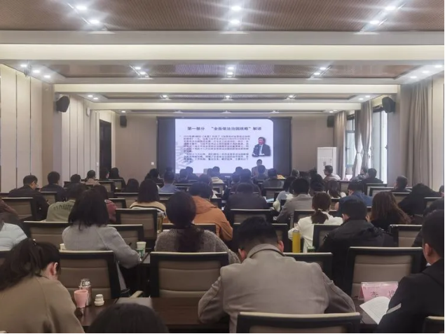 王教授从历史和发展的角度分析我国法治建设发展总体脉络,及习近平总书记关于全面依法治国新理念新思想新战略“十个坚持”和“七项重点”讲述了法治建设重点内容、发展历程和当前全面推进依法治国战略任务的必要性和艰巨性。从立法、执法、司法、守法等方面,阐述了近年来全面推进依法治国在重点领域、关键环节取得突出工作进展和我市法治建设基本情况介绍、存在问题及整改方向等方面问题进行了解析。
