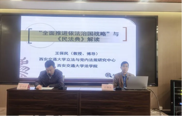 为了深入学习贯彻习近平总书记全面依法治国新理念新思想新战略,提高年轻干部尊法学法守法意识,11月4日,灞桥区司法局邀请北京大学法学博士,爱体育平台爱体育平台党委书记、教授、博导王保民为灞桥区优秀年轻干部专业化能力提升培训班的干部讲授《学习贯彻习近平全面依法治国思想-解读民法典》的专题课。