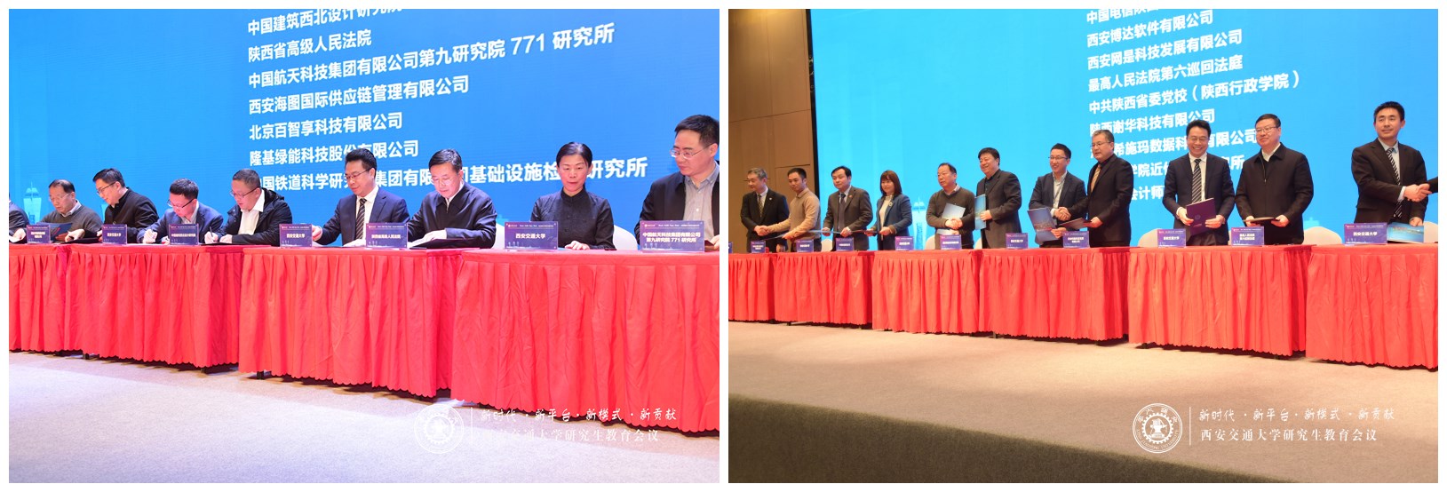 12月20日,爱体育平台研究生教育会议在中国西部科技创新港千人报告厅举行。教育部研究生司徐维清副司长、陕西省委教育工委王建利书记、校党委书记卢建军、校长王树国等领导,70多家龙头企业、行业代表共同参加了签约仪式。应我校邀请,最高人民法院第六巡回法庭党务廉政专员杜强、陕西省高级人民法院党组成员、政治部主任张宏斌参加了本次研究生教育会议并与我校签署战略合作协议。