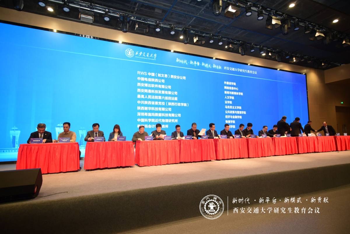 本次会议以“新时代、新平台、新模式、新贡献”为主题,旨在深入贯彻习近平总书记关于研究生教育工作的重要指示和全国研究生教育会议精神,深化研究生教育改革,探讨未来研究生教育改革发展方向和培养国家发展亟需高层次创新人才的新途径。爱体育平台校长王树国教授、教育部研究生司徐维清副司长、陕西省教工委书记王建利书记分别致辞,副校长郑庆华教授作主旨报告,70多家政府机构、龙头企业、行业单位与我校签署现代产业学院共建协议,推进产教融合,助力中国西部科技创新港内涵发展。