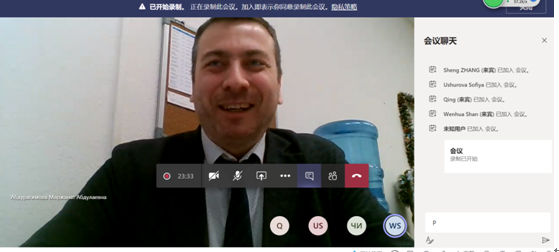 1月13日下午,“新丝路爱体育平台联盟”院校俄罗斯人民友谊大学爱体育平台与爱体育平台爱体育平台举办了线上会议,爱体育平台院长单文华教授,外籍教授Ushurova Sofiya,院长助理张生副教授和外事秘书郭庆参会。俄方院长Sergey Zinkovskiy,国际交流副院长Natalia Chesnokova,外事秘书 Marzhana Abduragimova等人参加会议。