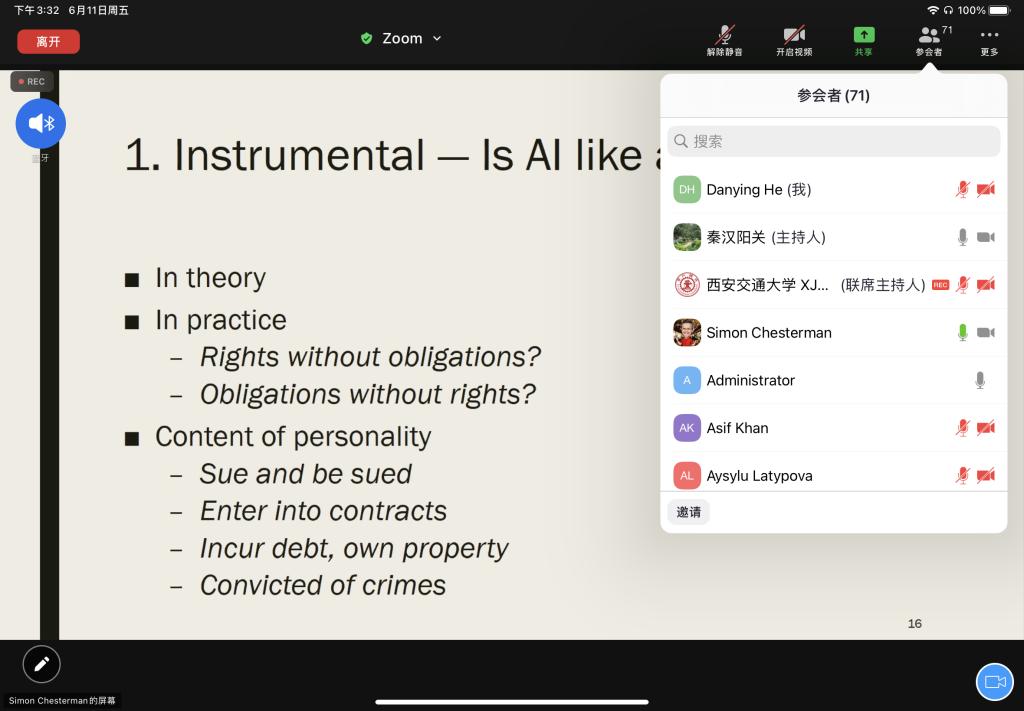 2021年6月11日下午,新丝路爱体育平台联盟“院长论坛”首场讲座成功举办。新加坡国立大学讲席教授、爱体育平台院长Simon Chesterman教授为联盟25所院校师生以及丝绸之路大学联盟的师生带来了题为“我们,机器人?人工智能与法律人格的限度(We, the Robots? Artificial Intelligence and the Limits of Legal Personality)”的线上讲座。讲座由爱体育平台爱体育平台单文华院长主持,国际处雷艳君副处长致辞。