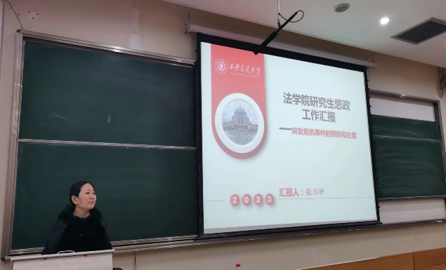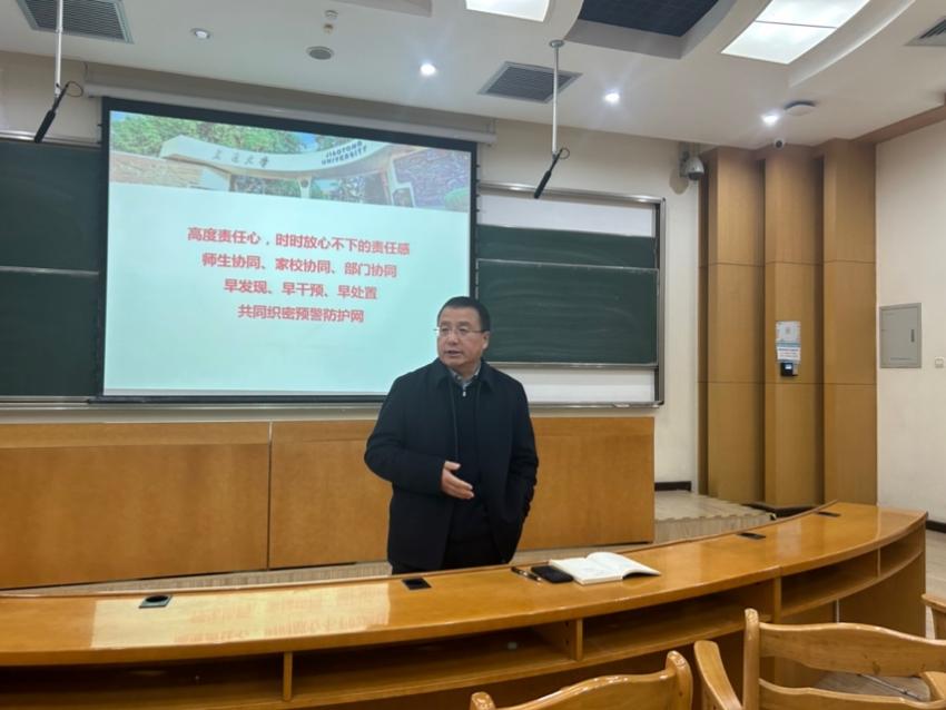 学生工作专职委员张乃钟老师汇报了爱体育平台在校研究生基本情况、思政工作队伍及思政教育情况,通过案例讲解面对突发危机事件的预防和处置。结合多年学生管理工作经验,给出研究生导师协同工作建议,倡导“师生协同、家校协同、部门协同,早发现、早干预,共织预警防护网”。