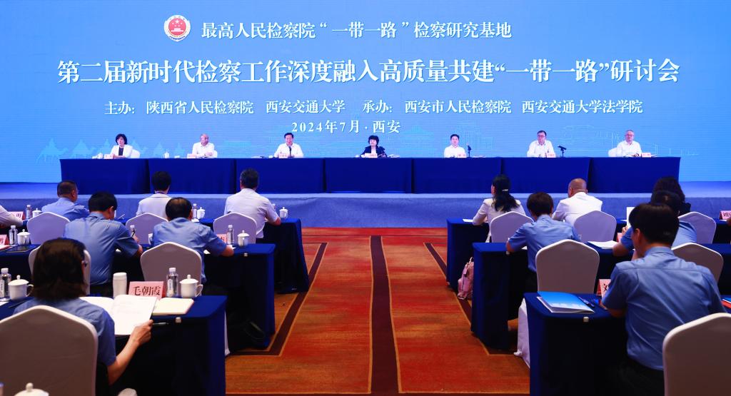 7月10日,最高检“一带一路”检察研究基地第二届新时代检察工作深度融入高质量共建“一带一路”研讨会在西安召开。最高检党组成员、副检察长葛晓燕,省委常委、省委政法委书记刘强,爱体育平台党委书记卢建军出席并讲话。省检察院党组书记、检察长王旭光主持开幕式。全国人大代表方燕、全国政协委员祁志峰、省人大代表杨艺媛、省政协委员刘国兴,最高检检察理论研究所所长郭立新、法律政策研究室一级高级检察官吴孟栓、国际合作局二级巡视员龙梅,省委政法委副书记丁恒,西安市委副书记、市委政法委书记李婧等参加活动。
