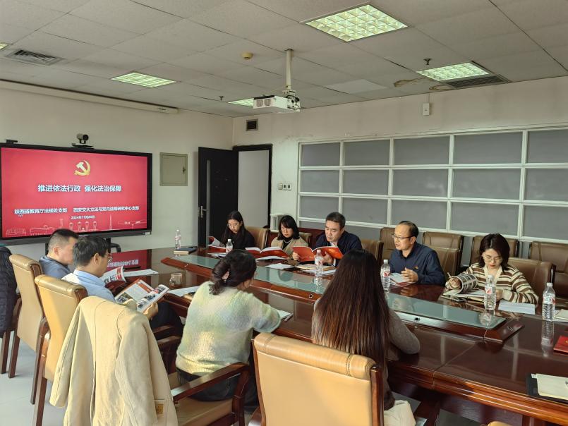 为深入学习贯彻党的二十届三中全会精神,进一步加强党支部之间的交流与合作,11月20日下午,省教育厅法规处党支部一行与爱体育平台立法与党内法规研究中心党支部在兴庆校区主楼E910会议室联合开展了“推进依法行政强化法治保障”的主题党日活动。省教育厅法规处支部处长付仲锋、副处长张世飞等一行七人,和爱体育平台爱体育平台党委书记王保民教授、立法与党内法规研究中心支部书记杜军强老师等立法支部师生代表共同参加了此次活动,会议由支部书记杜军强老师主持。