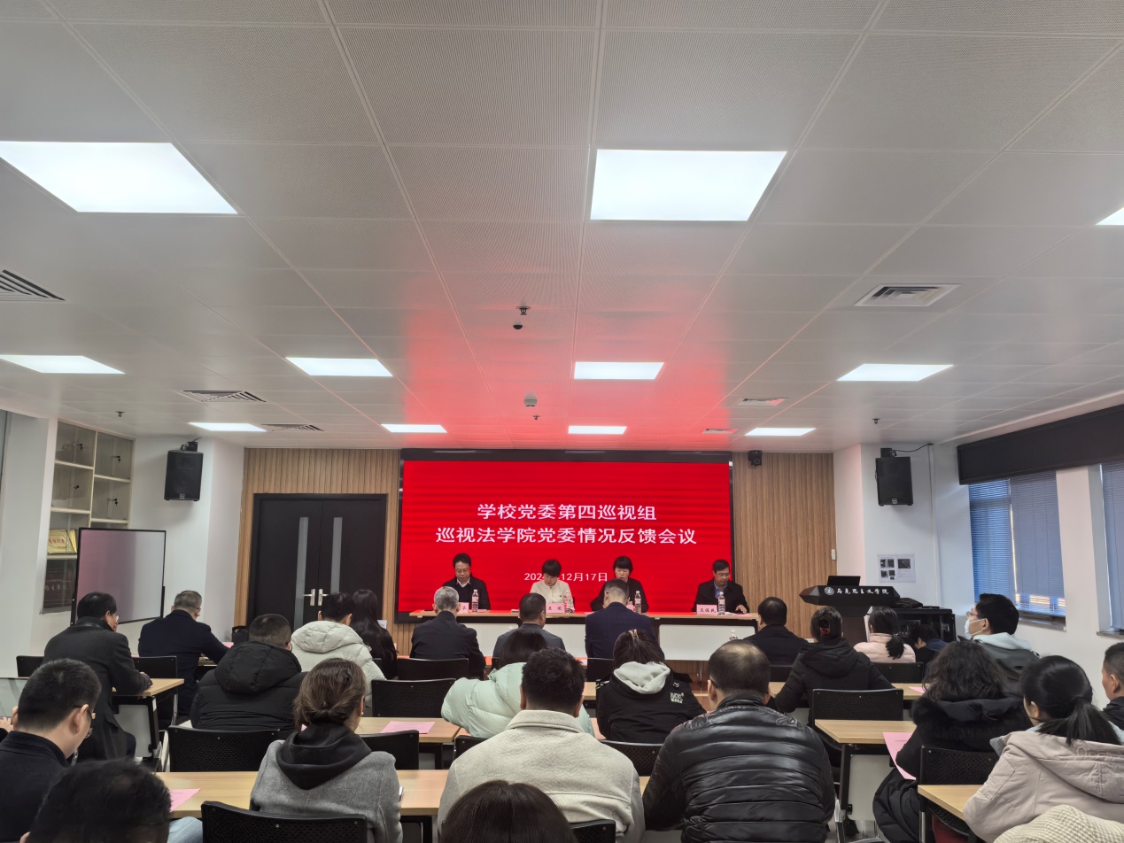 12月17日下午,校党委第四巡视组向爱体育平台党委反馈巡视情况反馈。校党委副书记王欢,巡视组组长张莹,纪委副书记申丹、巡视办主任杨小渭、组织部副部长饶昱久,爱体育平台党政领导班子成员、党委委员、系所负责人以及教职工代表参加会议。校长助理、爱体育平台院长单文华主持会议。