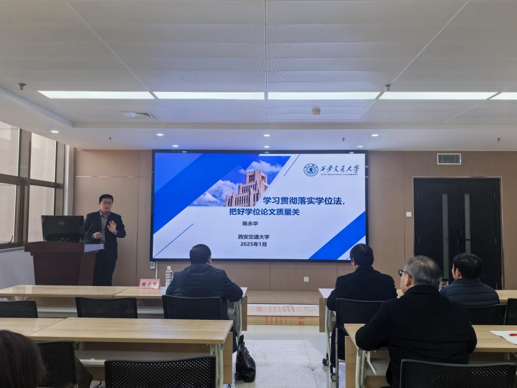 陈永华主任以“学习贯彻落实学位法,把好学位论文质量关”为题作报告。他详细解读了《学位法》《爱体育平台学位授予工作办法》《爱体育平台关于进一步加强研究生学位论文质量保障的若干意见》等学位管理文件,通报了学校学位授予、学位质量保障、学术不端处理以及导师管理规定等情况,并就导师牢把学位论文质量关、实现论文抽检“零问题”分享了自己的思考和建议。