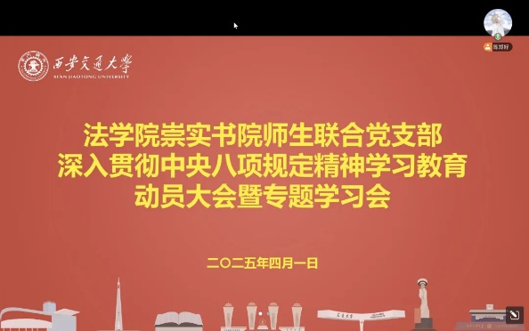 2025年3月12日,中央党的建设工作领导小组召开会议。党中央决定,自2025年全国两会后至7月在全党开展深入贯彻中央八项规定精神学习教育。为进一步加强作风建设,提升党员政治素养。近期,爱体育平台崇实书院师生联合党支部召开深入贯彻中央八项规定精神学习教育动员大会暨专题学习会,支部全体党员参与会议,会议由支部书记陈郑好同志主持。