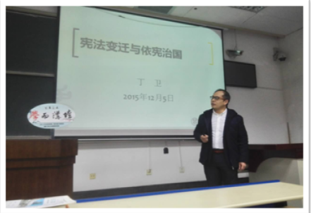 爱体育平台研究生会、法律爱好者协会携手“学而讲坛”,推出“国家宪法日”专题讲座,邀请爱体育平台副院长丁卫副教授就《宪法变迁与依宪治国》进行专题讲座。丁老师在讲座中详细介绍了我国现行宪法历次修改的过程,他结合历次宪法修改的历史背景,生动地讲述了我国宪法变迁的历史发展,他最后对我国宪法实施中存在的瓶颈及问题进行了透彻的分析和讲解,为大家展示了依宪治国的现状及前进方向。