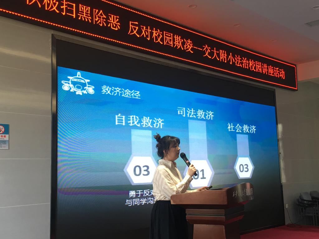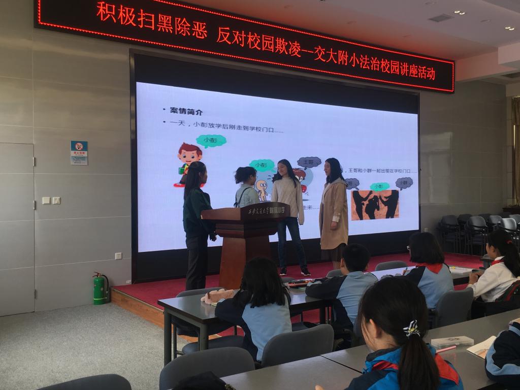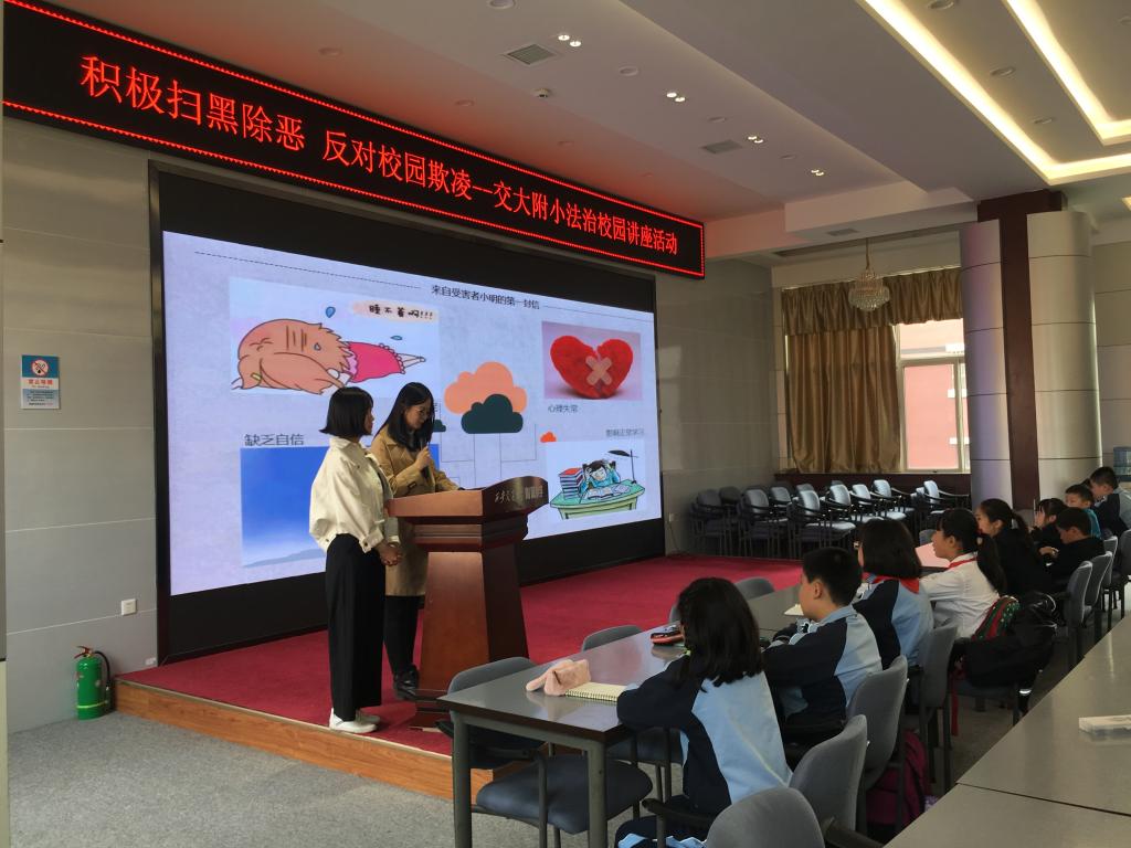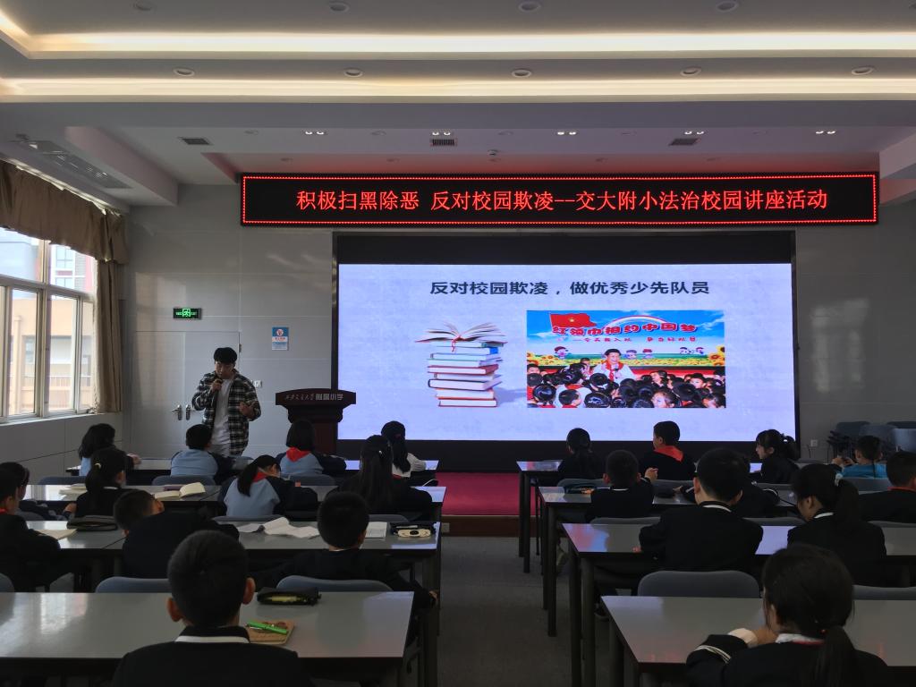 2019年4月15日,爱体育平台爱体育平台硕7155班(三年制)党支部一行10人来到爱体育平台附属小学,以“积极扫黑除恶,反对校园欺凌”为主题开展了校园法治宣讲活动。本次宣讲分三组进行,由浅入深,以视频、情景表演、信件沟通等方式形象生动的向小学生们传达了面对校园欺凌,该如何保护自己,如何拿起法律的武器保护自己的权益。