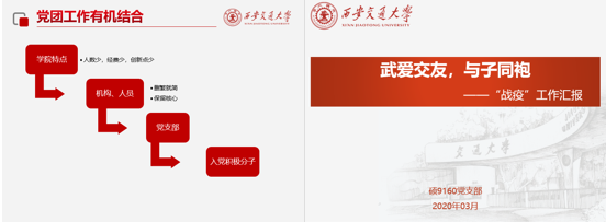 随后的党团工作交流环节,两院有关负责同学分别介绍了党团组织在抗疫期间的主要工作。交大爱体育平台硕9160党支部书记孙阳表示,爱体育平台各支部积极响应习近平总书记重要指示,落实党中央国务院决策部署,对标学校、学院防控要求;加强防疫宣传教育,引导学生带头守法;畅通信息报送渠道,保障日报制度运行;分享线上学习资源,配合做好线上授课筹备工作,号召同学在导师指导下深入研究疫情相关法律问题;倡导党员服务社区,组织党员捐款捐物。武大爱体育平台团委学生副书记刘云梦表示,自疫情发生以来,学院迅速成立以党委统一领导、统一指挥的疫情防疫工作小组,形成了党总支、党支部、党员个人三级联动的有力防控网络,从理论学习、思想引领、基层服务多领域开展抗疫工作。团支部积极响应,组织学习“青年大学习”团课,开展主题团日活动,鼓励团员青年积极投身防疫工作,发挥团员的生力军作用。